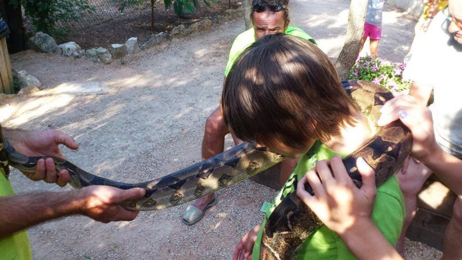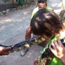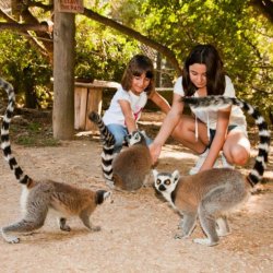 Close encounters in a walk through Lemur and Wallaby enclosure. Snakes to handle.
