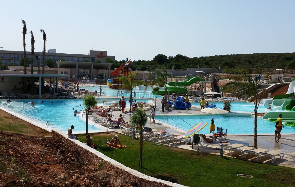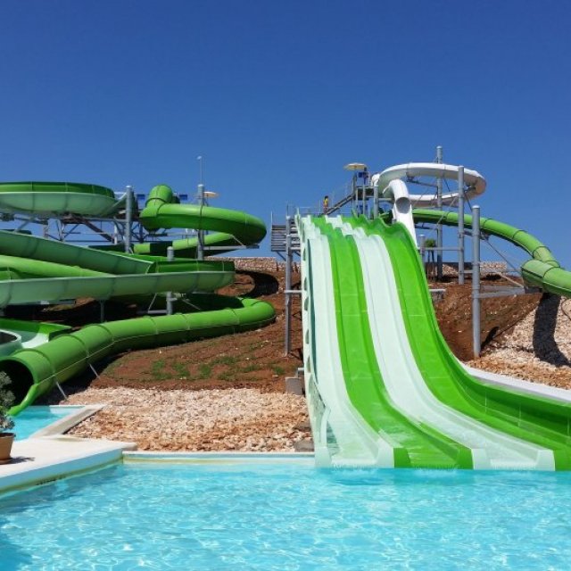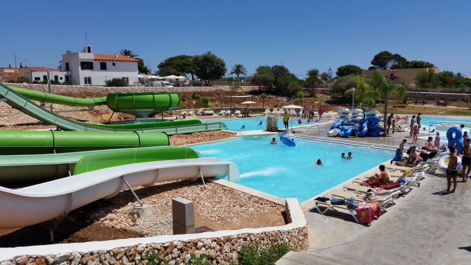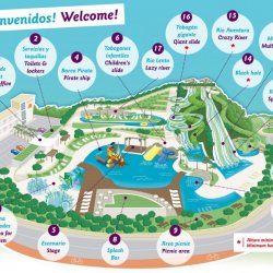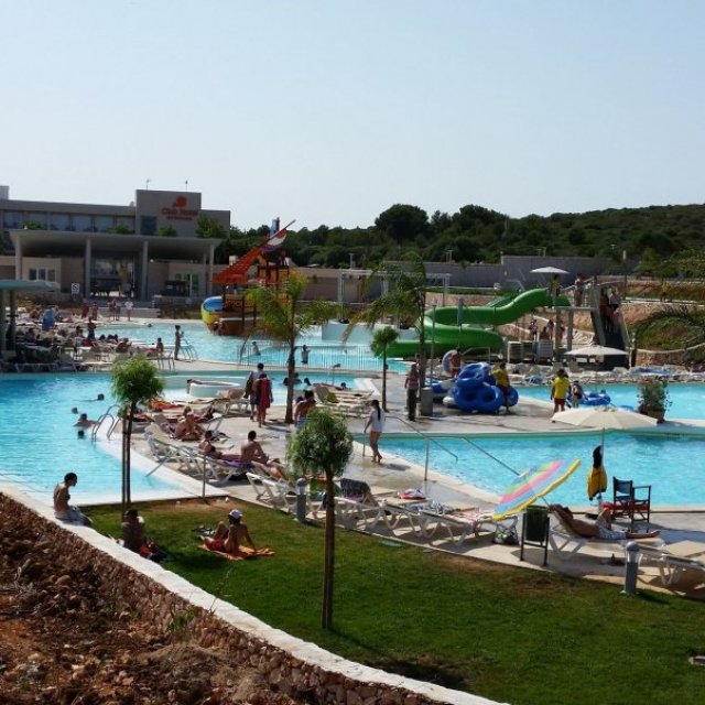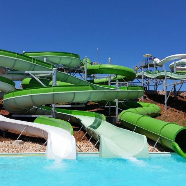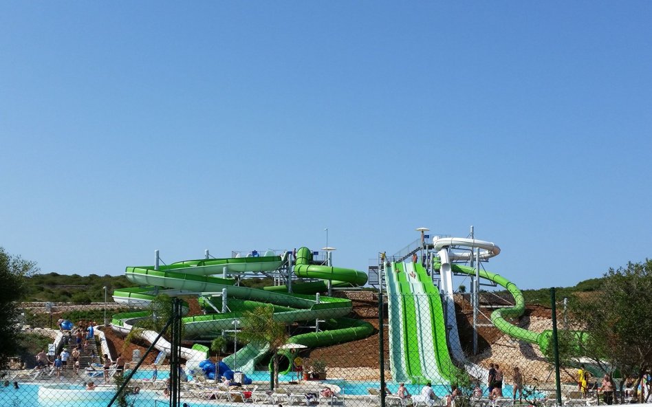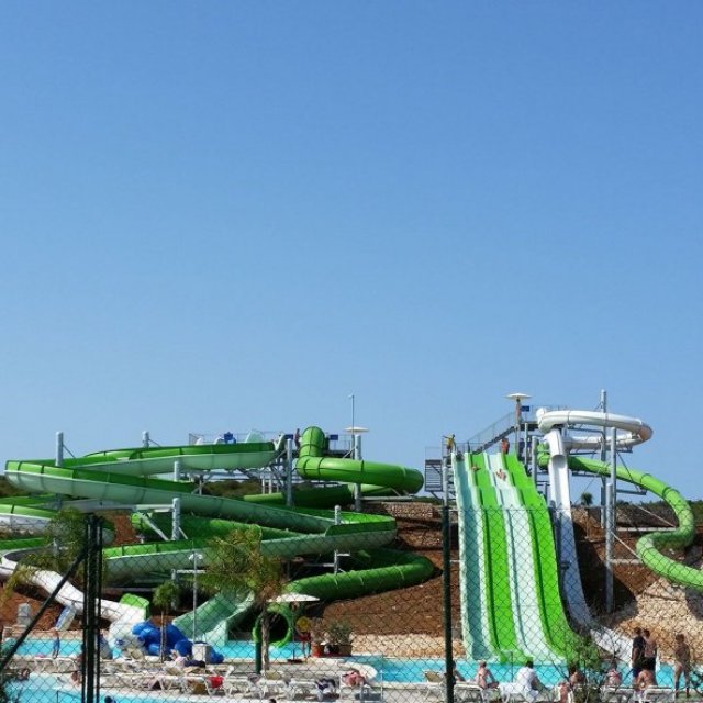 Water slides and splash pools, lazy river, jacuzzi and sun lounging areas. Large on site Bar-Cafeteria.